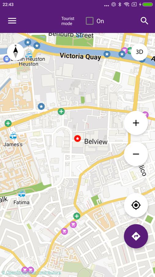 Mapa en línea y fuera de línea de Dublin : atracciones, tiendas, hoteles.